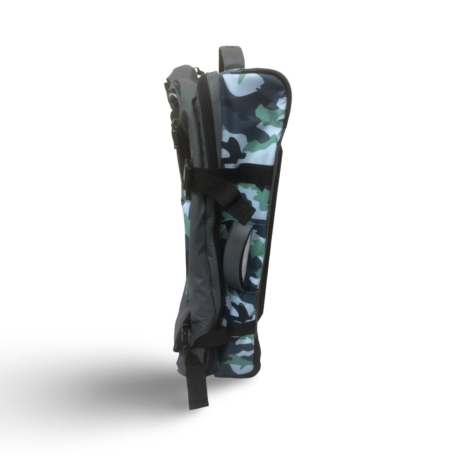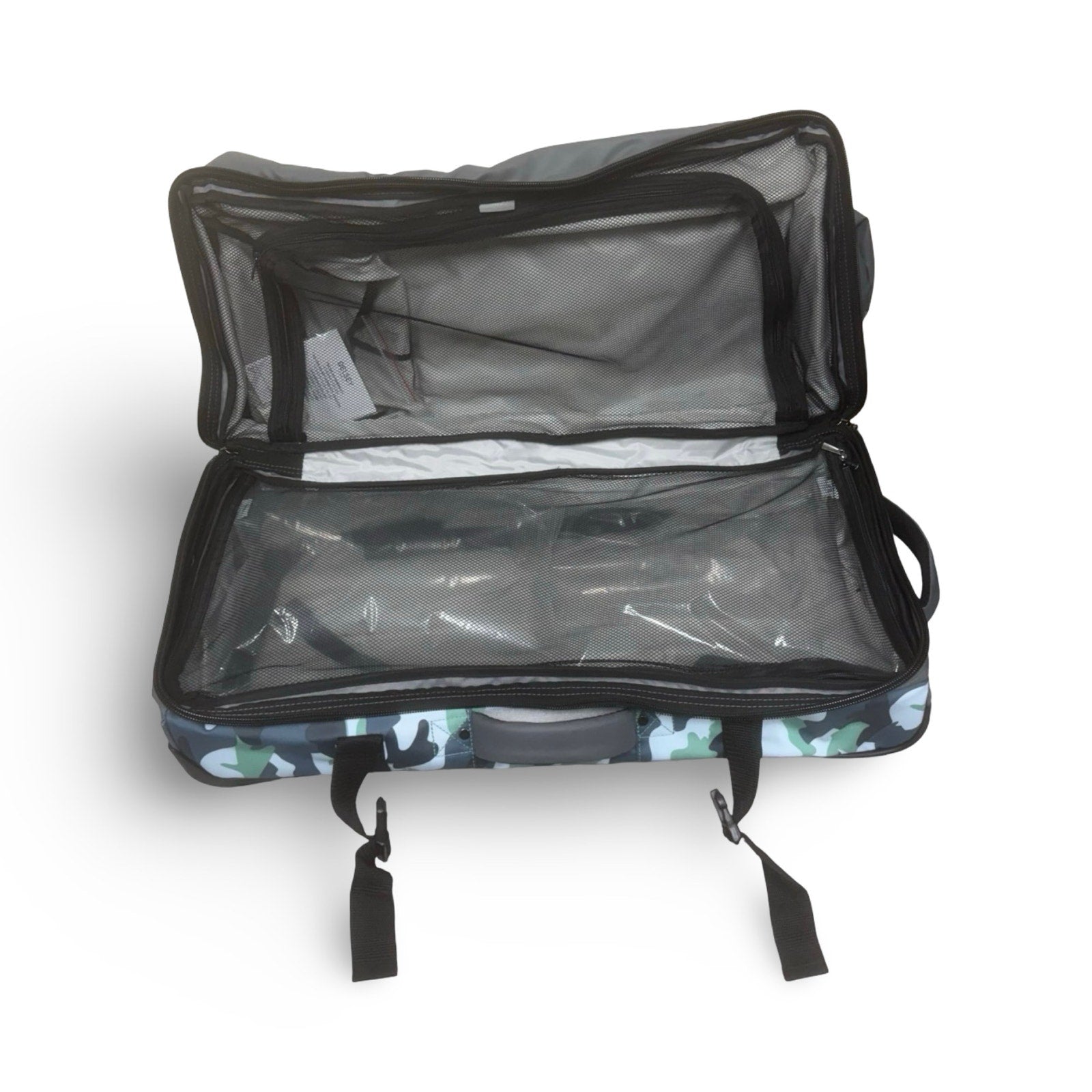 50-50 opening with two equal size compartments and zippered mesh panels
