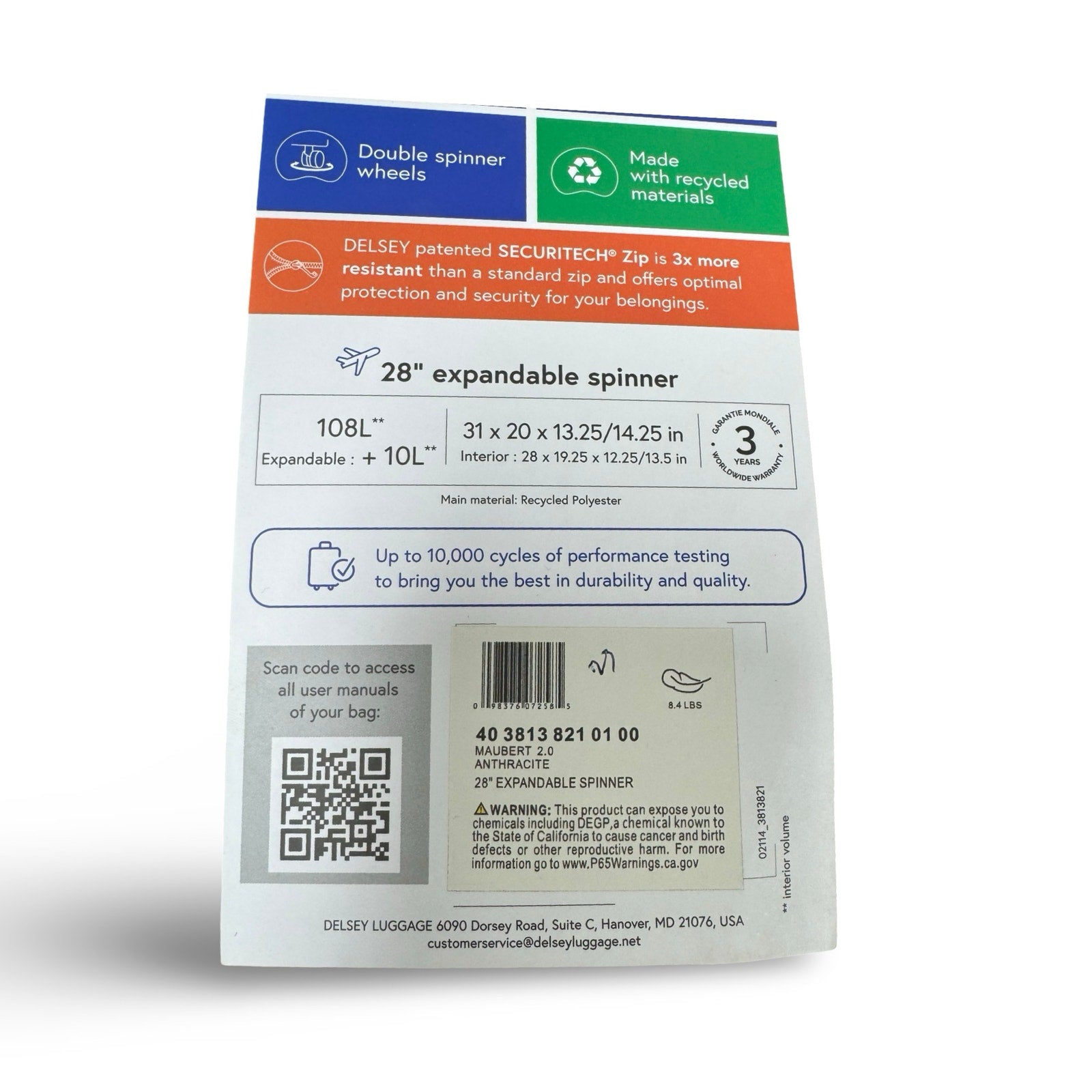 Durable Delsey SECURITECH® closure with TSA padlock