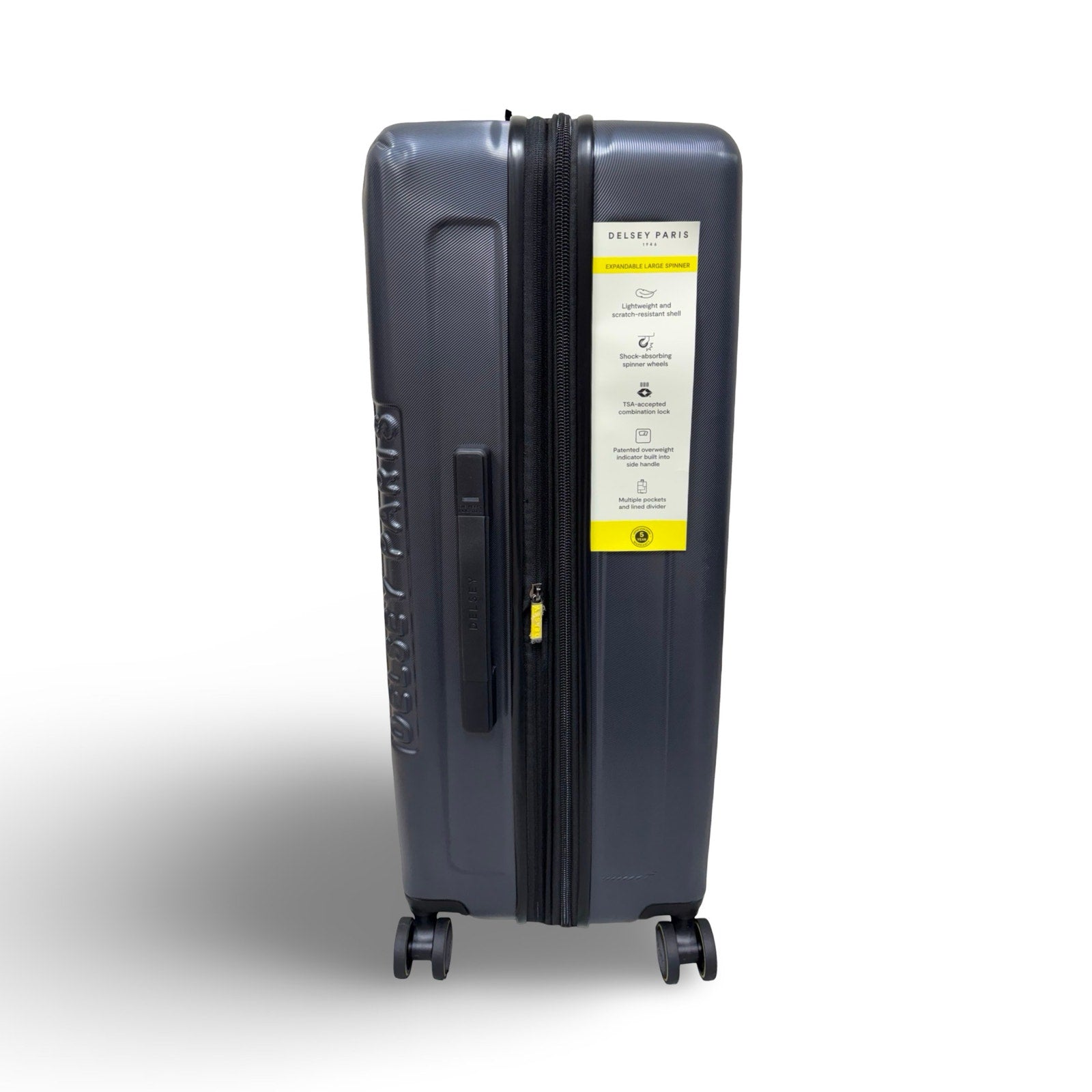 Bonus feature: Delsey's patented Overweight Indicator is built in the front carry handle and lets you know if your luggage weighs more than 50 lbs.