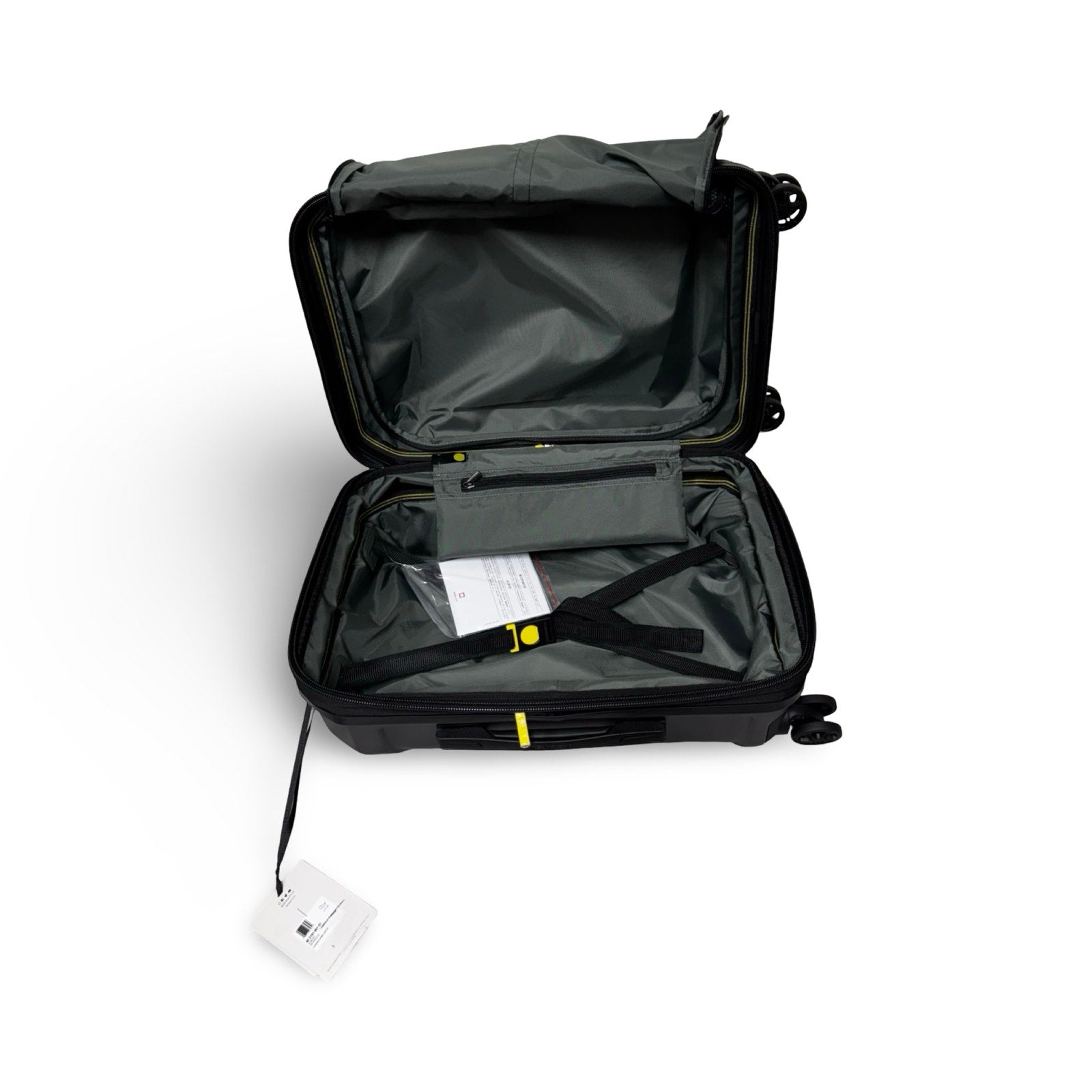 Two full interior packing compartments with tie-down straps, a zipped pocket, and lined divider with two mesh pockets