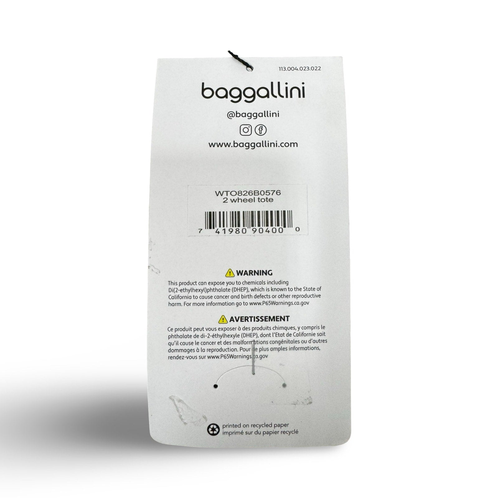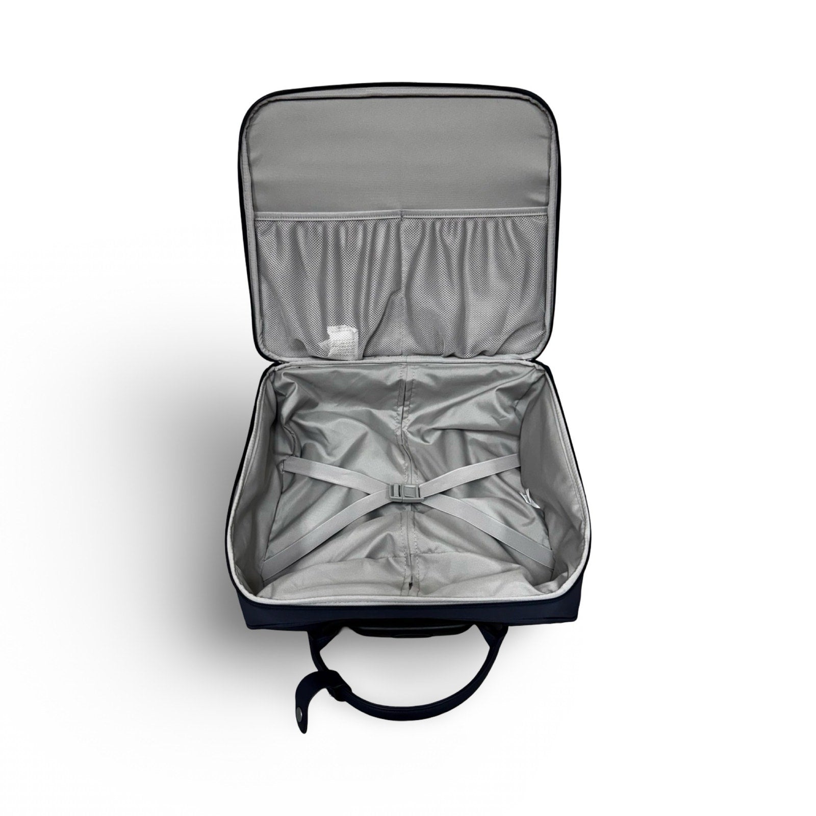 Two-stage telescoping handle and elasticized tie-down straps with quick-release buckle; 4.5" handle drop