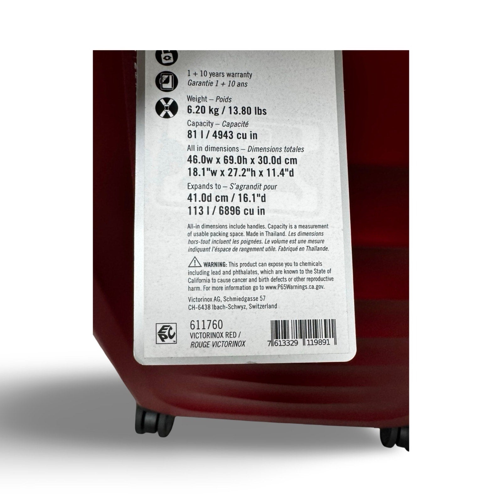 Telescopic handle system with Victorinox stabilizing technology offers a stability and strength